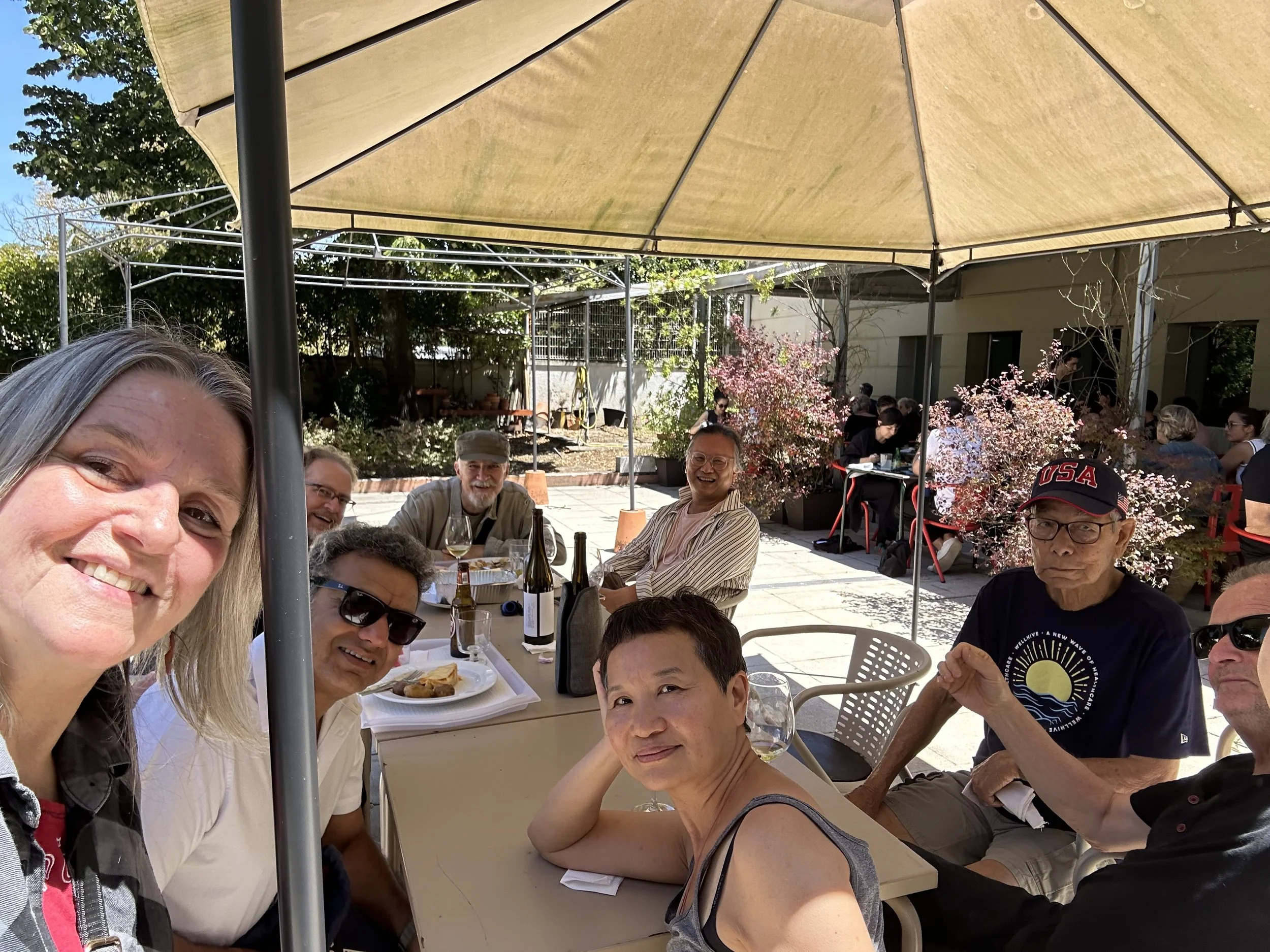 In the photo … Neilou in Porto in July this year with various friends that he made through Susan and Prentiss, enjoying a beautiful summer day with beer, wine, delicious food and great company