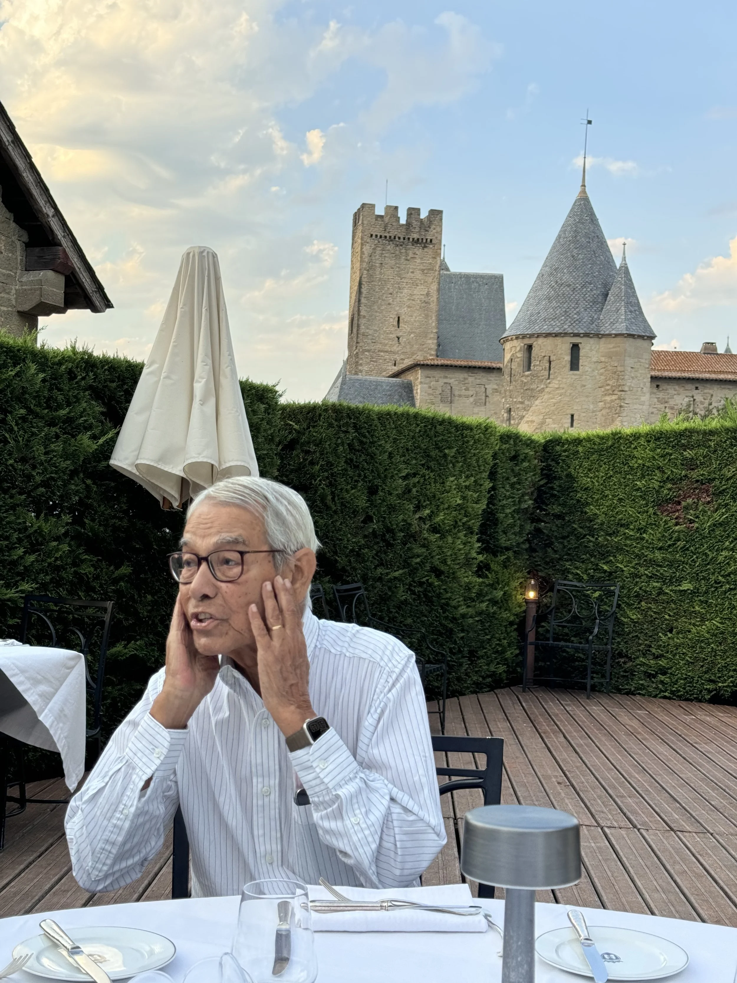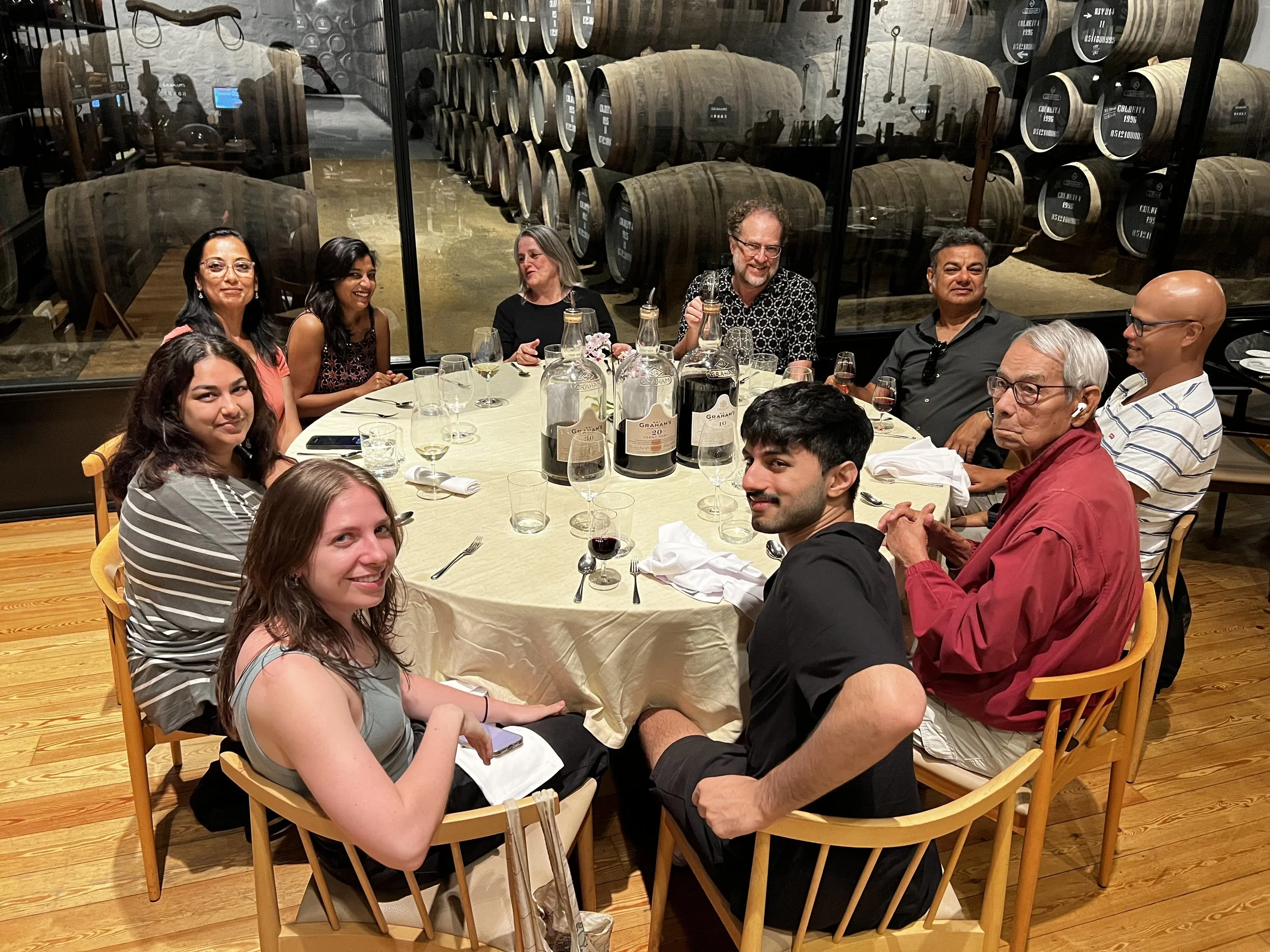 Photo: August, 2nd 2024. Neilou With all the kids of the extended Homchowdhury-Beteille family, Poulami, Gaurav, Ruhin, Sarah and Neel, having dinner at the Graham’s Port Winemakers at Porto, Portugal.